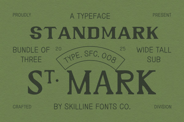 SFC Standmark Tall Font is a vintage serif font trio crafted with a perfect blend of classic structure and handcrafted detail. Designed to capture the spirit of traditional signage and old-world typography, Standmark brings warmth, sophistication, and versatility to every creative project.