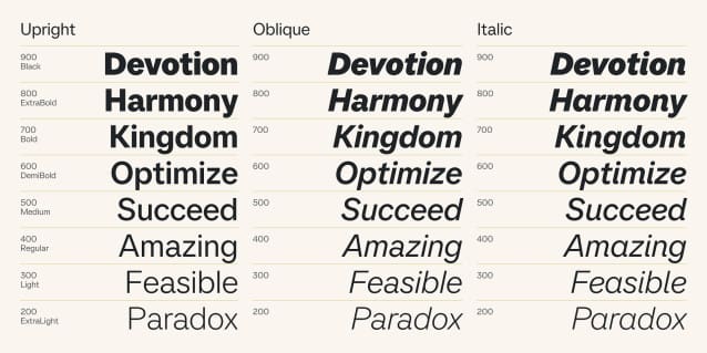 Besides the Oblique styles, SFT Ritam Sans offers True Italics, carefully crafted to add an extra layer of expressiveness. These italics stand out as a distinctive feature, offering a more dynamic and authentic slant than standard obliques and making the typeface exceptionally versatile for design contexts that require both elegance and impact.