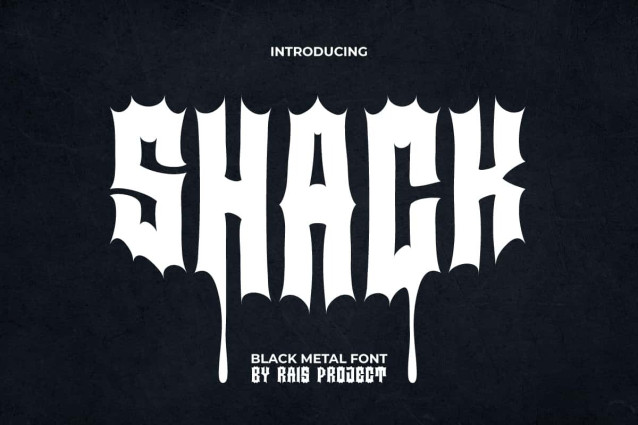 Shack Font is a creepy black metal font by RaisProject. This font has prominent characters and has interesting variations such as having paint drops at the bottom of the letters. Try this font now for various designs, such as custom design, poster, label, stationery, signage, invitation, advertisement, website, quotes, and more!