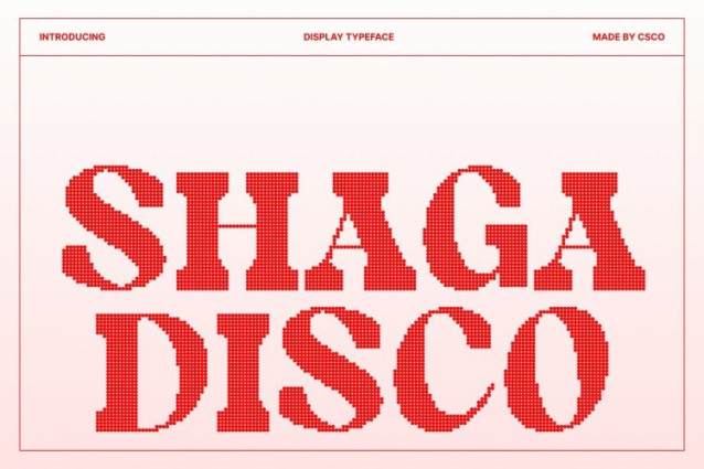 Shaga Disco Font This is a modern serif font that combines retro charm with contemporary design. Its well-balanced stroke thickness and clean lines create a bold yet refined appearance, making the typeface versatile and visually striking. The font’s structured design ensures readability while delivering a stylish, energetic aesthetic.