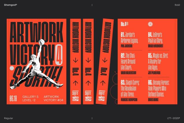 Shamgod Font Family is a bold, ultra-condensed typeface designed to exude speed and energy. Its grotesque style, sharp diagonal cuts, and compact form capture the raw intensity of sports and the urban culture of the ’90s and 2000s. With its expressive character, Shamgod is perfect for eye-catching headlines, logos, and sports branding. Ideal for streetwear, digital design, and modern branding, it brings a strong, dynamic presence to any project. Whether used in posters, brand identities, or editorial layouts, its striking visual impact makes it a powerful choice for those seeking a bold, contemporary aesthetic.
