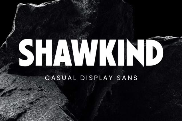 Shawkind Font a strong and elegant sans serif font. Inspired by modern-classic poster designs that emphasize typography, Shawkind was specifically designed as a display font with bold shapes, curves and sharp edges that convey a sense of confidence.