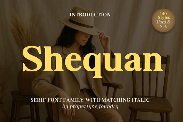 Shequan Font Family is a modern serif font with an elegant classic touch. Its letterforms feature balanced thick–thin contrast, soft curves, and refined serif details that create a luxurious, warm, and editorial feel. This font comes in 140 styles: 7 weights, 5 widths, and 2 forms with matching italics, and also includes ligatures and multilingual support, making it highly versatile for premium branding, magazine layouts, product packaging, and creative projects that require a classic yet contemporary character.