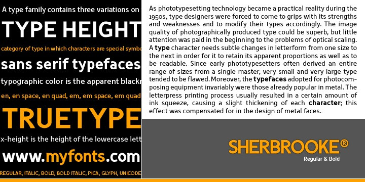 Sherbrooke Sans Serif Font is a simple and sans serif font. I have chosen the name of this typeface after the “Sherbrooke” Street in Montreal, Canada, that I daily walked in for several months in the late 2005 while I was studying in Montreal, Quebec, Canada. I do adore this street and also I adore the whole city of Montreal. This font comes in two different weights. “Sherbrooke” can be used in wide fields of publications such as the titles of novels, literary texts, short stories, dictionaries, books, newspapers, websites, and magazines. It is suitable for T-shirts, mugs, advertisement light boards in malls, subtitles of movies, logos, cans of foods, and medicines’ names. The font is more attractive when it is printed in calendars and for displaying the contents and paragraphs of electronic encyclopedias and different online websites. “Sherbrooke” is specifically designed for educational, journalistic, literary, and social purposes. The main characteristics of “Sherbrooke” Typeface are in its sans serif new designed letters and also in its lowercase special numerals. I think that these characteristics have made “Sherbrooke” exceptionally unique with its alphanumeric combinations. You can enjoy this typeface and use it anywhere at any product or service. It is simply gratuitous for all. The word “Sherbrooke” is a person’s name. Sherbrooke Street – officially Rue Sherbrooke – is a major east-west artery at 31.3 kilometers in length and it is the second longest street on the Island of Montreal in Canada. The street is named for John Coape Sherbrooke, the Governor General of British North America from 1816 to 1818.