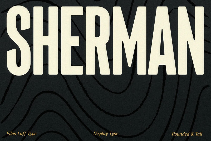 Sherman Font is soft yet assertive, a gentle giant in the world of Typefaces. Drawn to give headlines a confident and imposing base – while still feeling warm and friendly.