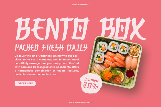 Shinkai – Japanese Style Font is a bold Japanese-style typeface that blends tradition and modern flair. Inspired by brush strokes and Eastern aesthetics, Shinkai brings a sense of movement and cultural depth to your design. Perfect for branding, posters, menus, and themed visuals, this font captures the elegance of Japanese calligraphy with a contemporary twist. Add a touch of the East to your next project with Shinkai‘s dynamic and expressive letterforms.