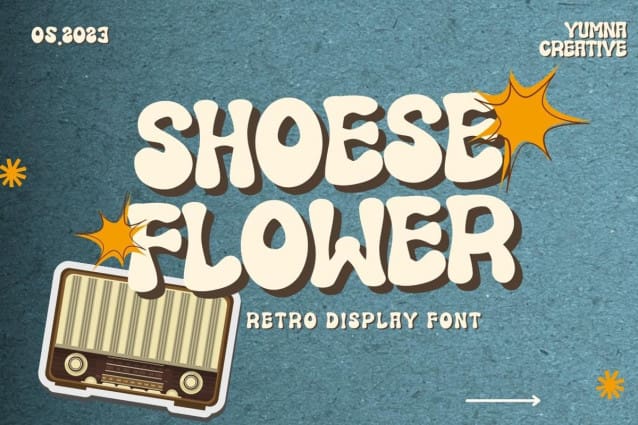 Shoese Flower font is made for personal use. Get the full version of the fonts if you want to use it for commercial purposes by purchasing the licenses here: https://creativemarket.com/habibie.habibie1532/31384702-Shoese-Flower-1990s-Retro-Font?u=fontlot123