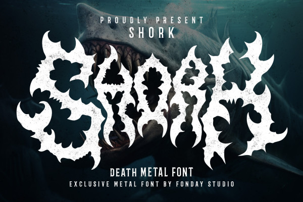 Shork’s unique style will make your designs stand out, with its bold shapes and distinctive shark-themed elements. Whether you’re creating album covers, merchandise, or promoting a metal concert with a shark theme, Shork will give your designs a memorable look that captures the spirit of metal music and the awe-inspiring presence of sharks.