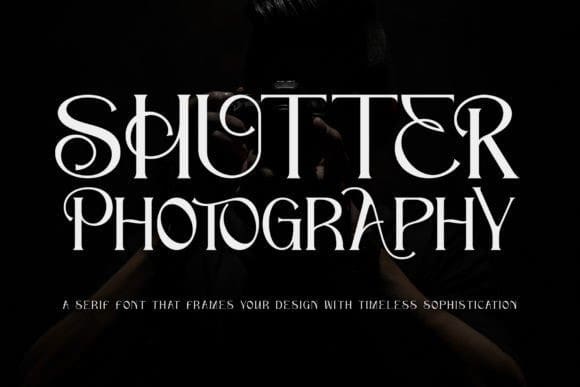 Shutter Photography Font, a serif font that blends bold sophistication with unique character forms. Perfect for enhancing various design projects, from elegant product packaging to refined branding, this font’s PUA encoding ensures easy access to a wide range of distinctive glyphs and swashes, promising exceptional results for your creative endeavors.