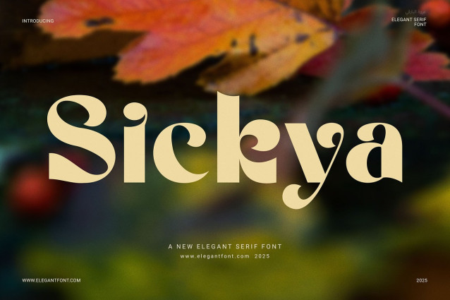 Sickya Font is a striking serif display typeface designed for creative professionals who want strong visual impact. With bold strokes, sharp serifs, and clean edges, it brings character and clarity. Whether you work on branding, titles, or packaging, this font helps you shine.