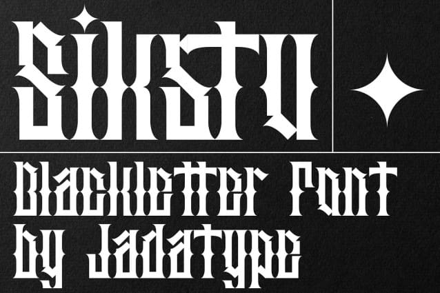 Sikstu Blackletter Font is a Display font that came with Blackletter style. Suitable for product, Branding, social media, logotype and so on. contains standard English letters, numbers, punctuation, and several accents that support multilingualism.