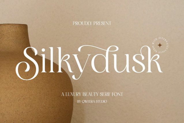 Elevate your creative work with Silkydusk, a luxury serif font designed to make a lasting impression.
