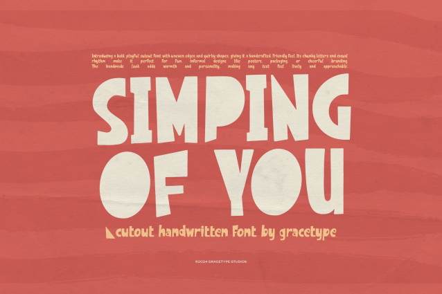 This font is used only for demos (Demo license). If you want to use this font for commercial use please contact: https://gracetypestudio.com/simping-of-you-cutout-handwritten/