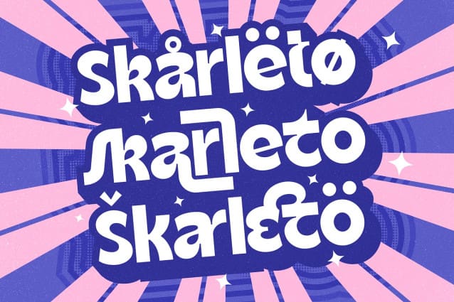 Skarleto Font. A bold, playful and funky display sans serif that are inspired by the nowadays trend. Crafted with high attention to details, crisp edges and smooth lines are guaranteed. Packed with some alternate characters and ligatures, let you play with wider imaginations.