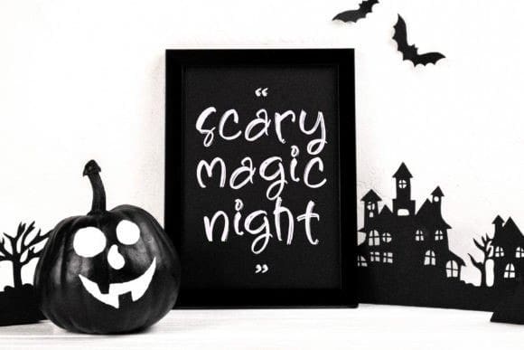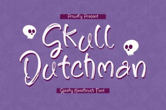Skull Dutchman Font – Spooky Handbrush Font suitable for any projects such as logos, branding projects, homeware designs, product packaging, mugs, quotes, posters, shopping bags, t-shirts, book covers, name cards, invitation cards, greeting cards, labels, photography, watermark, special events, and all your other lovely projects that need a beautiful script taste.