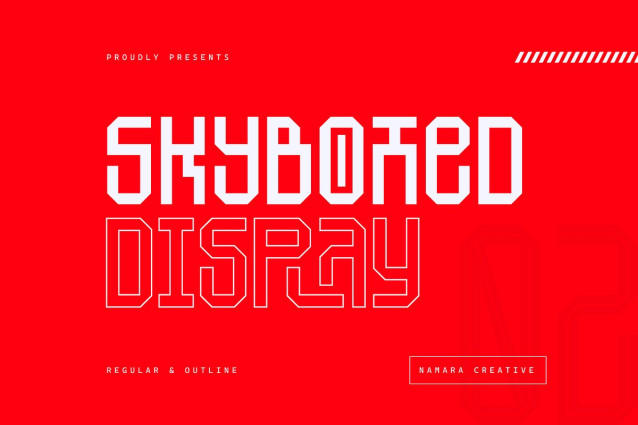 SkyBoxed Font a modern futuristic display font. Powerful font boasts a cutting-edge design inspired by strength and assertiveness. It’s the perfect choice for sports jerseys, logos, headlines, posters, esports advertising, and any project that demands impact and distinction.