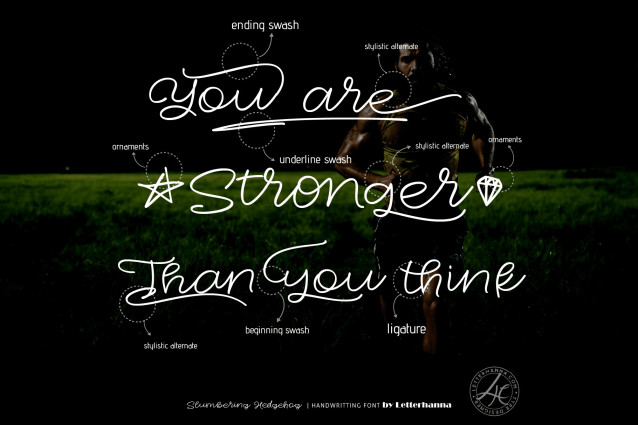 Slumbering Hedgehog Handwriting Font Gain easy access to all alternate glyphs, swashes, ornaments, and underlines by simply using ligatures. You can try them out yourself in the font preview tool on our website, letterhanna.com.
