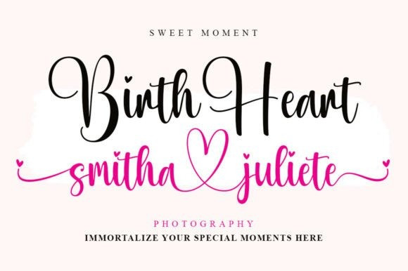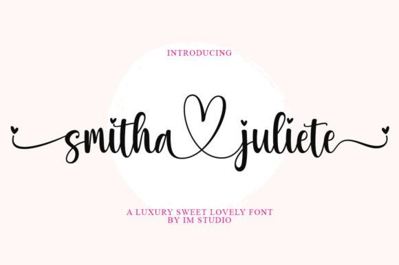 Smitha Juliete Script Font is an enchanting, single-stroke handwriting font that exudes playful elegance. Its delightful feature – a heart-shaped flourish – instantly crafts an atmosphere of romance and affection. With its inherent charm and simplicity, this font breathes life into Valentine-themed creations, wedding invites, and birthday greetings.