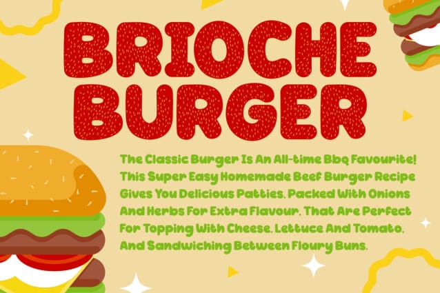 Smoky Maple Font, a display burger font that captures the essence of culinary delight. With its playful and whimsical design, Smoky Maple is perfect for a wide range of applications, from logos and branding to crafting and invitations. Each letter is crafted to resemble the layers of a delicious burger, making it an ideal choice for food-themed projects and children’s books. The font’s versatility extends to business signage, greeting cards, stickers, and magazine designs, ensuring that your message stands out with a touch of flavor and creativity.