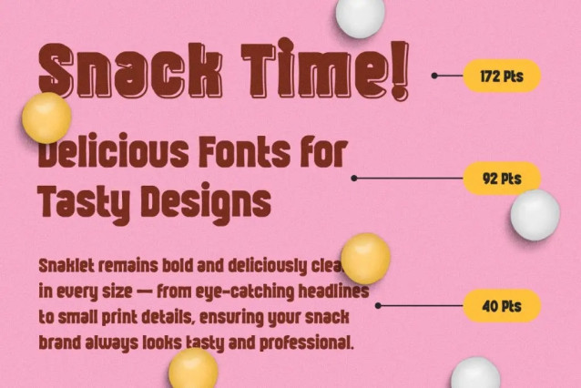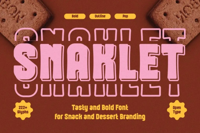 Snaklet Pop Font is a bold handwritten display font crafted to elevate snack and dessert packaging with a flavorful and friendly vibe. Its chunky curves and dynamic strokes give off a deliciously playful and energetic feel—perfect for catching eyes on shelves or scrolling screens.