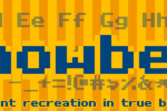 Snowbell Font: True bitmap TTF (and FON) reconstruction of the System font in a particular version of EA’s DeluxePaint II, used in several different videogames. Contains additional glyphs and will render without anti-aliasing most of the time, especially on Windows, as the TTF includes embedded bitmaps for the 8px size (and multiples) in a similar manner to fonts like MS Gothic.