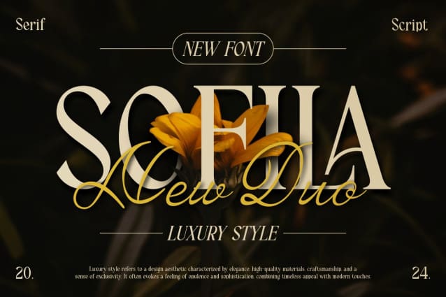 Sofila Font Duo, this font is a type of letter that has special characteristics that create an impression of luxury, elegance, and firmness. This font includes a series of design elements such as balanced thin and thick lines, soft curves, and elegant and clean serifs. The sharp angles and fine details of each character create a highly aesthetic impression and give off an air of elegance.