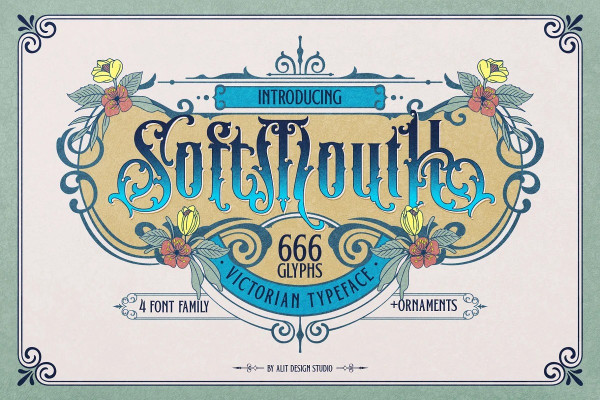 Whether you’re working on elegant invitations, branding projects that require a touch of vintage sophistication, or creating elaborate typographic artworks, the “Soft Mouth Victorian Typeface” is a must-have resource. Its Victorian elegance, extensive features such as ligatures and alternates, a rich collection of 666 glyphs, and the added bonus of frames and floral embellishments, make it an invaluable asset for bringing a sense of timeless charm to your creative endeavors.