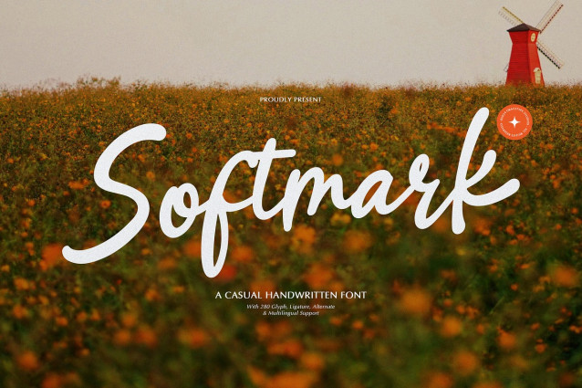 Softmark Font | Casual Handwritten Font, from Gracetypestudio, suitable for any projects such as: logos, branding projects, homeware designs, product packaging, mugs, quotes, posters, shopping bags, t-shirts, book covers, name card, invitation cards, greeting cards, label, photography, watermark, special events, and all your other lovely projects that need a Retro Script taste.