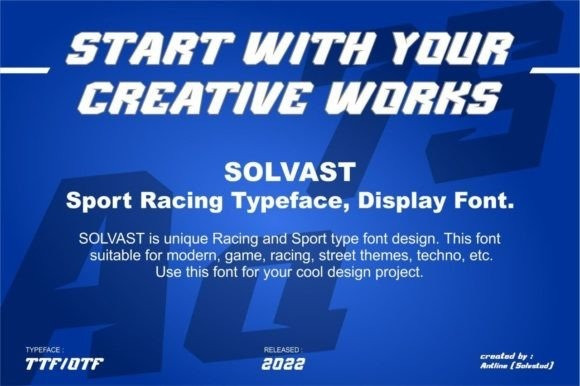 Solvast Font is a font inspired by racing and modern sports. Its character is suitable for automotive magazine covers, racing game covers, logos & branding, product design, etc.