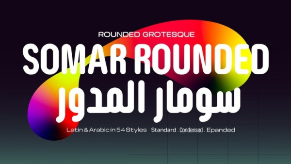 As a consequence, Somar Rounded comes in three styles and supports more than fifty languages in both Arabic and Latin with a homogeneous matching that facilitates its usage across different mediums.