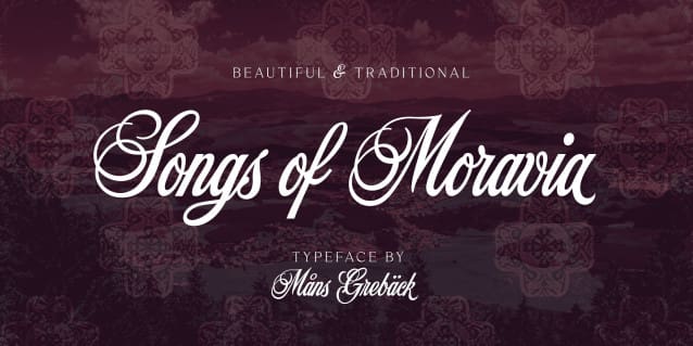 Songs Of Moravia Font is a beautiful script typeface. Its decorative capitals, adorned with delicate swashes and swirls, evoke the rich heritage and melodious charm of European design.