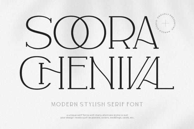 Soora Chenival Font is a classy display serif font with unique look that is perfect for multipurpose projects. I made Soora Chenival Font inspired by the concept of romantic vibes and made it into a modern yet luxury style. This font is also looks elegant and will fit well in any design and very recommended for logo, crafts, posters, books, branding, quotes, print templates, packaging, invitations, product labels, advertising, wedding project and more. This typeface comes in uppercase, lowercase, with punctuation, symbols, numerals, ligature and stylistic alternates. This font is PUA encoded which means you can access all of the charming glyphs and swashes with Character Map on Windows or Font Book on Mac.