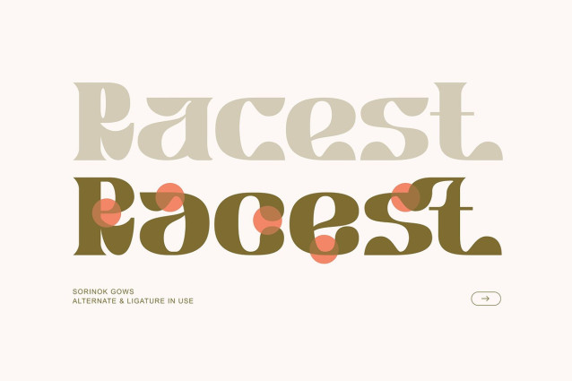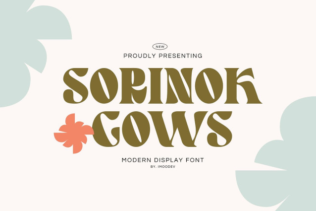 Sorinok Gows Font is a organic and groovy display font with a modern retro twist! The letterforms are wide and chunky with high contrast strokes, soft rounded corners, and flared wedge serifs. Petal shaped cutouts, creating a playful, almost floral rhythm that feels handcrafted and organic.
