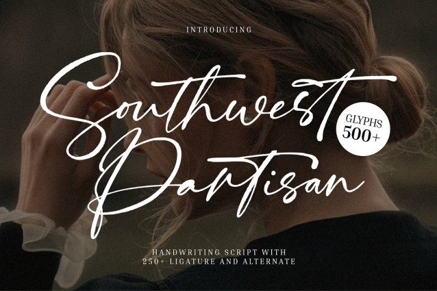 Southwest Partisan Font – Elegant Handwriting Font with natural, flowing lines, ideal for logos, quotes, and wedding designs, bringing a unique, handcrafted feel.