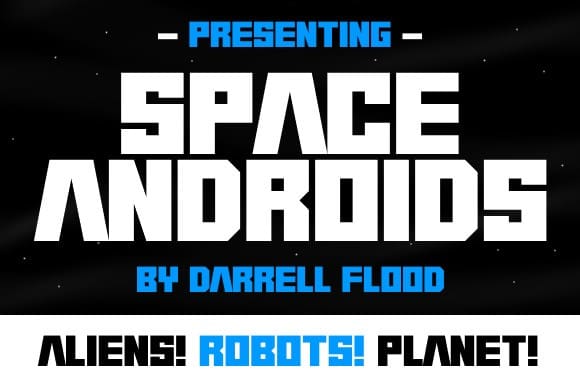 Space Androids Font is an angular, robot like font in a slick modern style. Perfect for alien encounters, exploring new planets and general science fiction use!