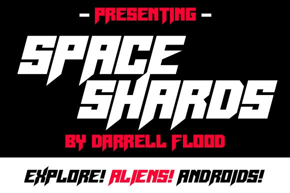 Space Shards Display Font, A crisp, angular font in a razor-sharp, edgy style. Perfect for alien encounters, high-tech presentations, and general sci-fi use!