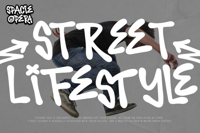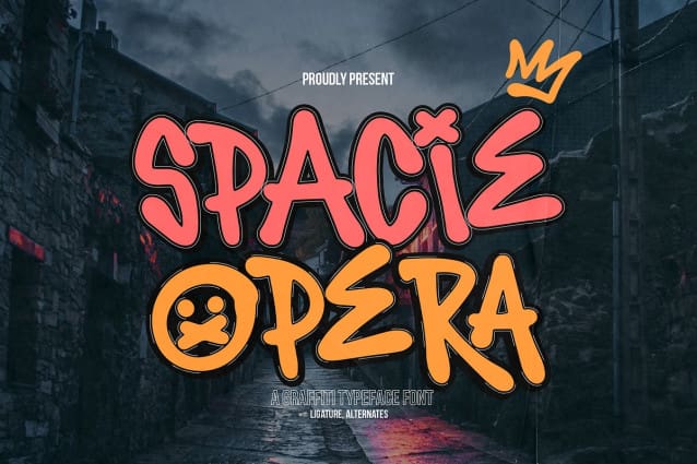 Spacie Opera Font | Graffiti Typeface, from Denustudios, suitable for any projects such as: logos, branding projects, homeware designs, product packaging, mugs, quotes, posters, shopping bags, t-shirts, book covers, name card, invitation cards, greeting cards, label, photography, watermark, special events, and all your other lovely projects that need a Graffiti Typeface taste.