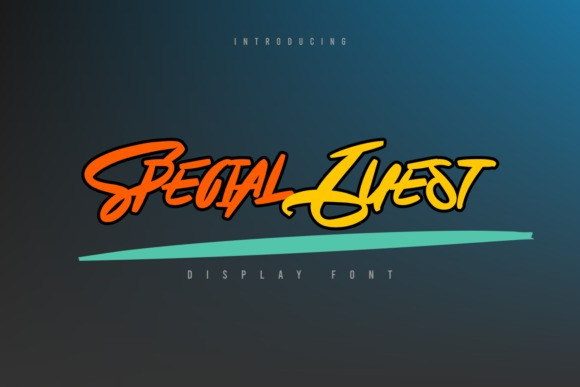 Special Guest Font is a cool and urban styled display font. This font is suitable for designs such as t-shirts, sportswear, logos, advertisements, clothing, and more.