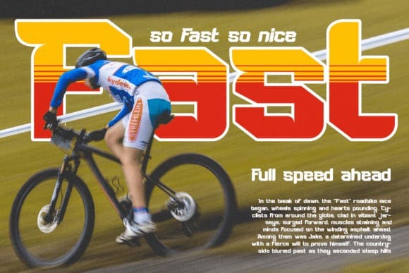Speed Force Font, an awesome sports font crafted to infuse your projects with energy and motion. This bold typeface, with its modern cutouts, captures the essence of speed and power. Perfect for sports headlines, racing logos, automotive games, and any text that needs a vibrant, fast-paced feel, SpeedForce ensures your designs stand out with a commanding presence.