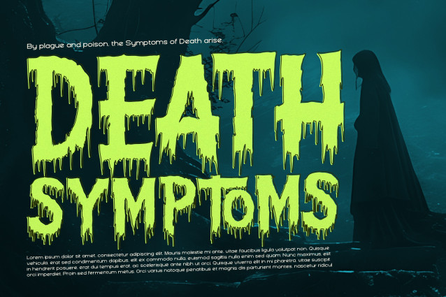 Spillknot Dripping Horror Font, from Denustudios, suitable for any projects such as: logos, branding projects, homeware designs, product packaging, mugs, quotes, posters, shopping bags, t-shirts, book covers, name card, invitation cards, greeting cards, label, photography, watermark, special events, and all your other lovely projects that need a Horror taste.