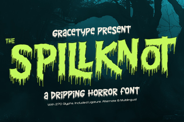 This font is used only for demos (Demo license). If you want to use this font for commercial use please contact: https://gracetypestudio.com/spillknot-dripping-horror-font/