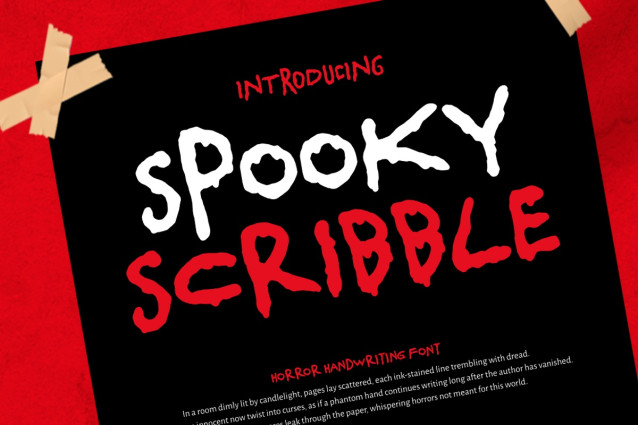 Designed to amplify fear and urgency, Spooky Scribble adds personality to every project with a gritty, handwritten tone. Whether you’re designing a cursed diary, a horror movie title, or unsettling packaging, this font delivers maximum impact. The bold red and white tones from the previews pair perfectly with dark backgrounds and cinematic layouts. Use it for logos, event posters, Halloween merchandise, or any design that needs to scream terror. Let your creativity roam where the shadows dwell.
