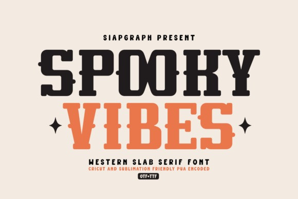 Spooky Vibes Font is a bold and distinctive Western slab serif font designed to infuse your creative projects with a touch of rugged charm and vintage character. With its strong, blocky serifs and classic Western flair, this font is perfect for Print On Demand artists, sublimation designers, and Cricut crafters who want to make a powerful, rustic statement.