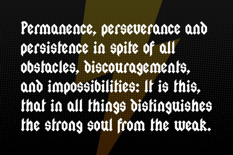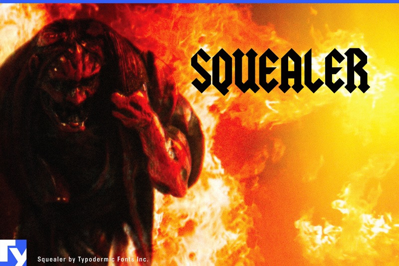 Squealer Blackletter Font is a hard-rock black letter headliner, perfect for edgy displays.