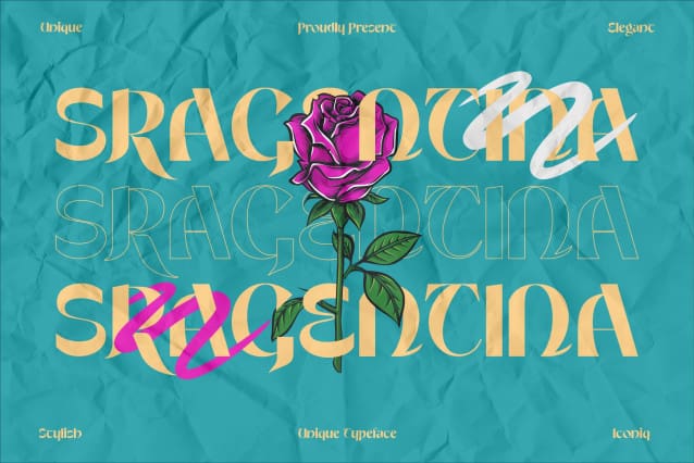 Sragentina Font – display sans serif font with 230+ characters. Includes uppercase, lowercase characters, multilingual. Sragentina Font is perfect for logos, social media posts, product packaging, product designs, and other projects.