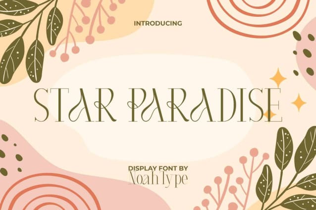 Star Paradise Font is a stunning beautiful contemporary display font. This font is a combination of thin lines and unique curves that add to the beauty of its appearance to catch your eye. It will be good for any designs, such as brand image, business card, catalog, cover, custom design, invitation, label, product packaging, quote, signage, stationery, web, and more!