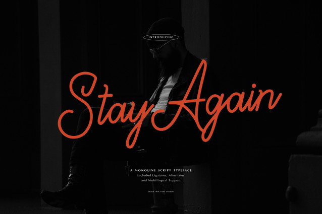 Stay Again Font | Monoline Script Font, from Gracetypestudio, suitable for any projects such as: logos, branding projects, homeware designs, product packaging, mugs, quotes, posters, shopping bags, t-shirts, book covers, name card, invitation cards, greeting cards, label, photography, watermark, special events, and all your other lovely projects that need a Monoline Script font taste.