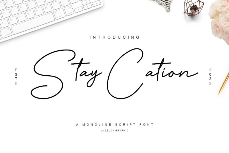 Staycation Handwritten Font is a modern and awesome handwriting font with a natural style. This font is suitable for your current or classic design: Signature. Logo. Branding. Invitation. Blog Headline and many more.