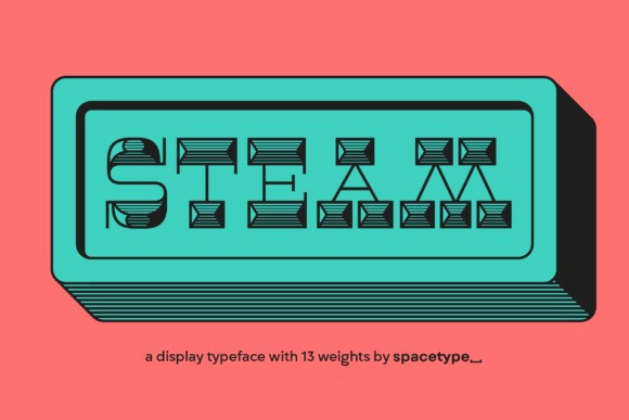 Steam Font is a cool and interestingly designed display font. It will elevate a wide range of crafting ideas, from cards, to branding, labels and much more. Add it confidently to your favorite creations and let yourself be amazed by the outcome generated.