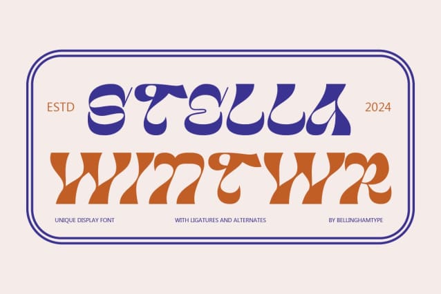 Stella Winter Font is Display font. This font would be perfect for photography, watermarks, social media posts, advertisements, logos & branding, invitations, product design, labels, stationery, product packaging, special events, and other projects.